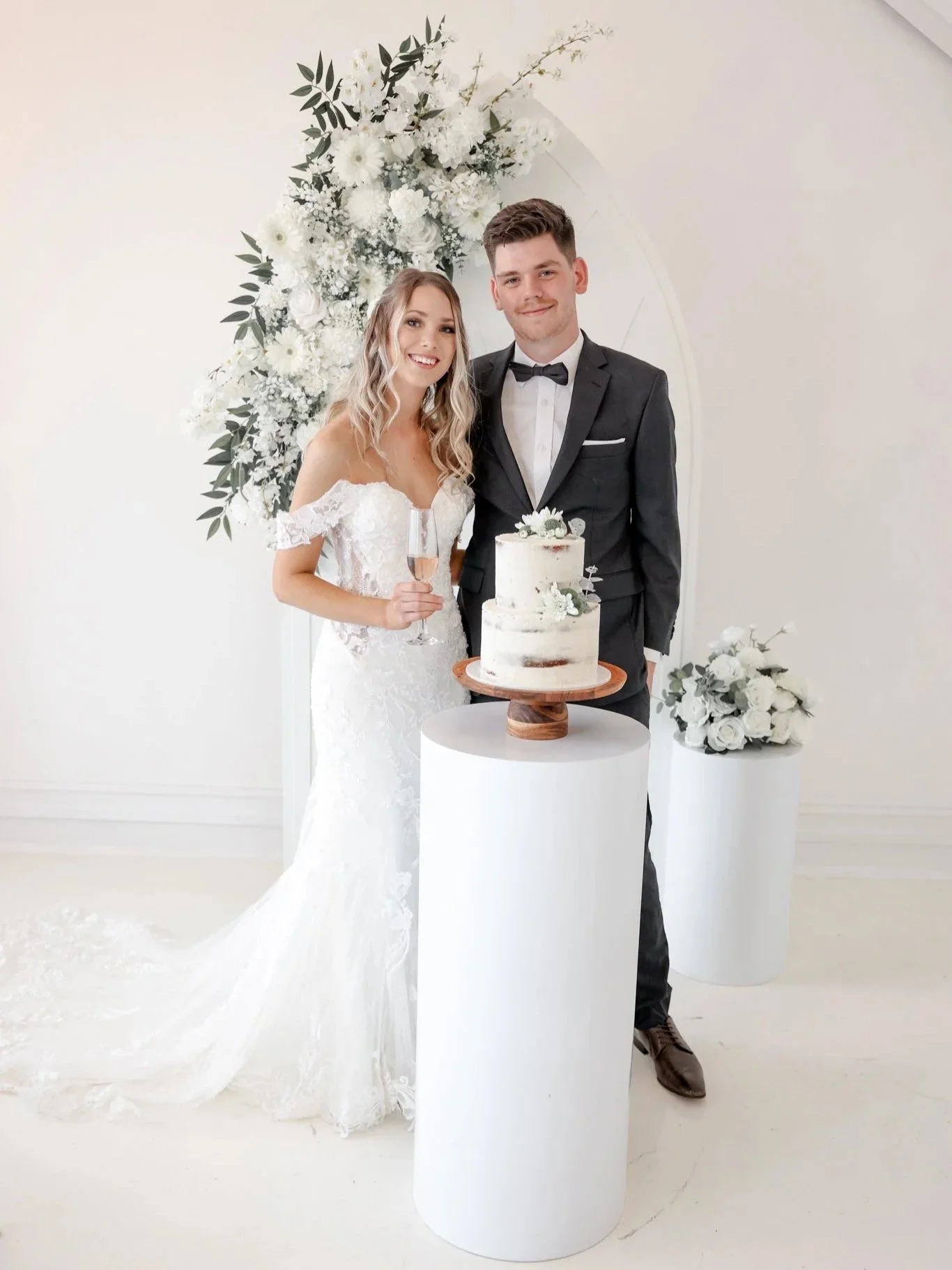 Your choice of a statement, sweet or sparkling moment:• A stunning two-tier wedding cake adorned with fresh florals OR